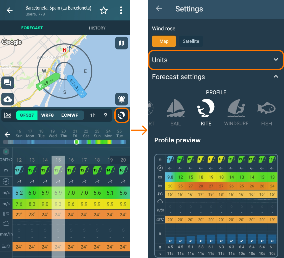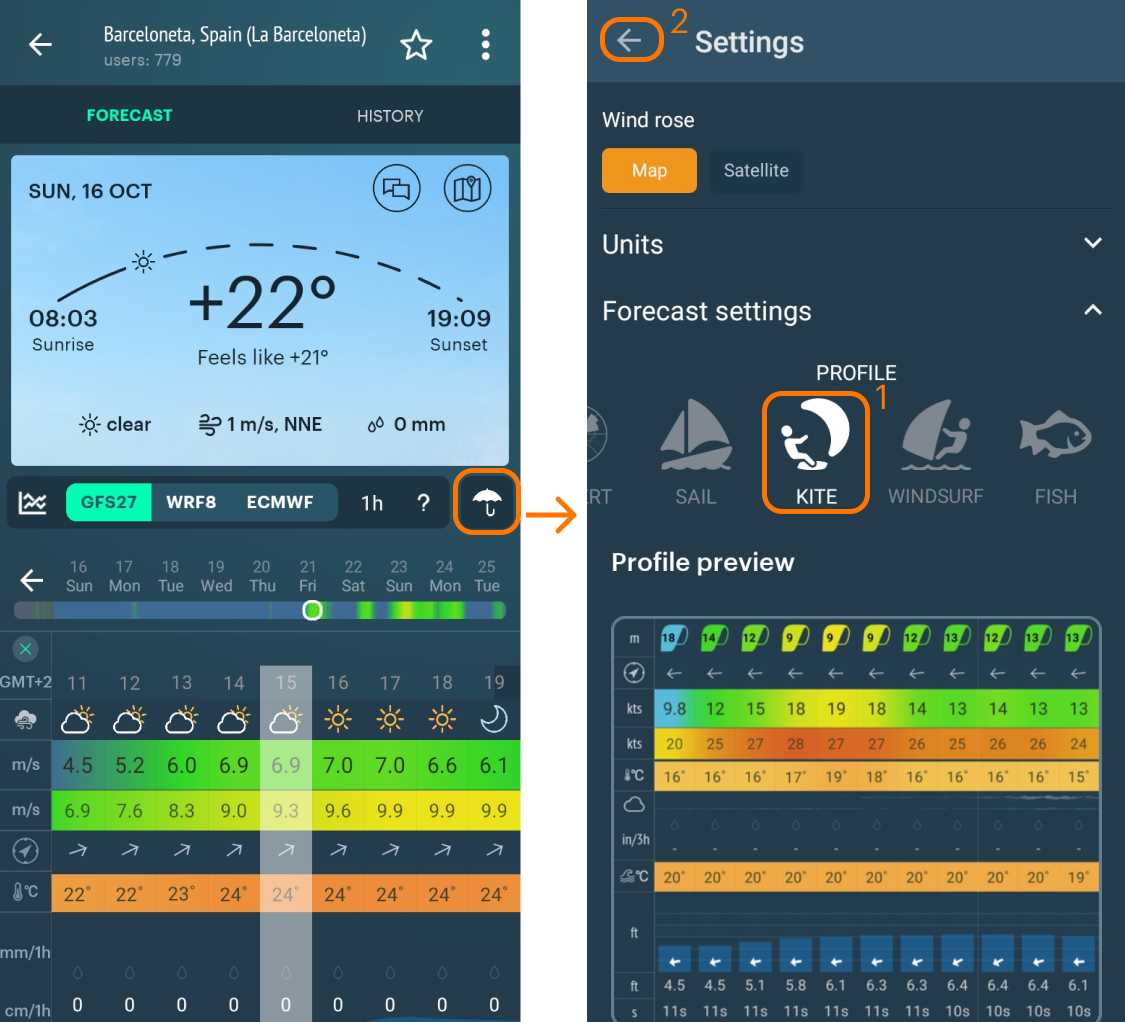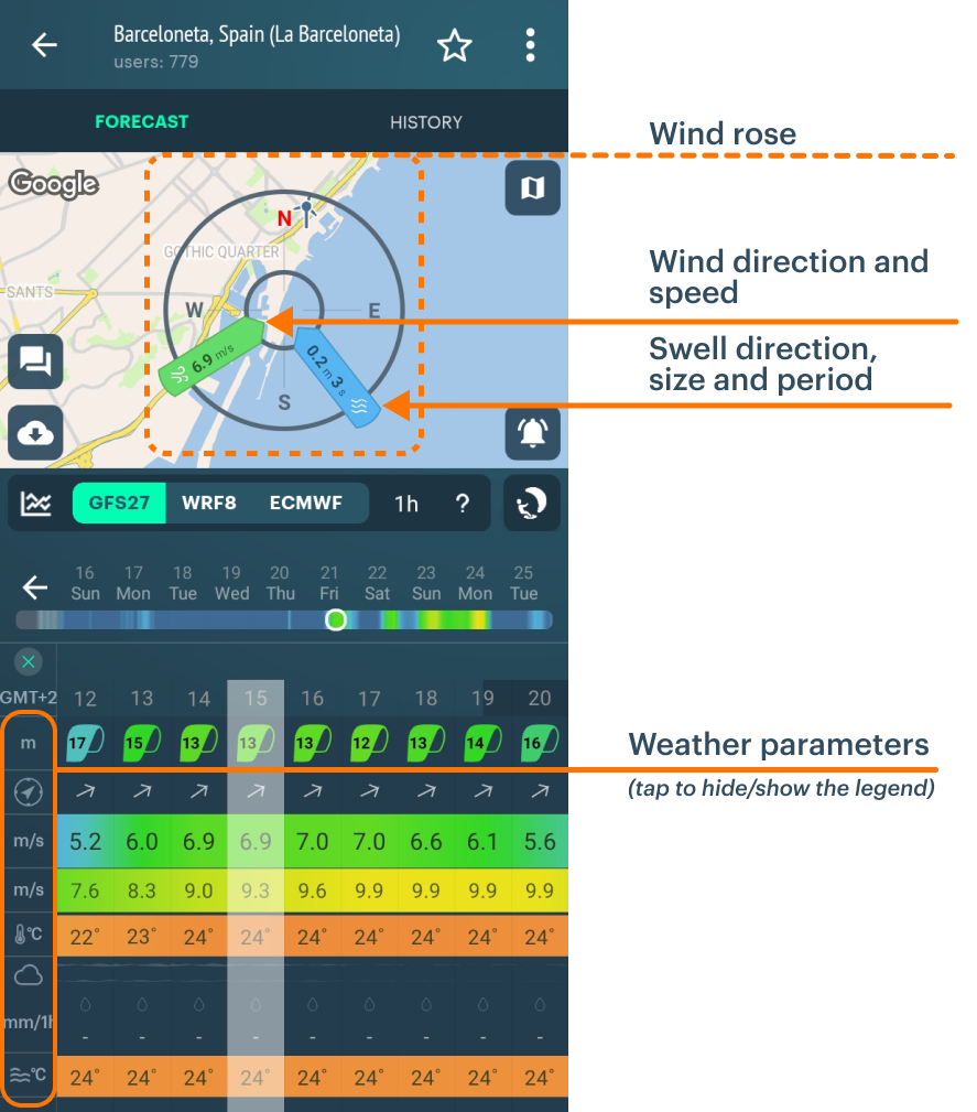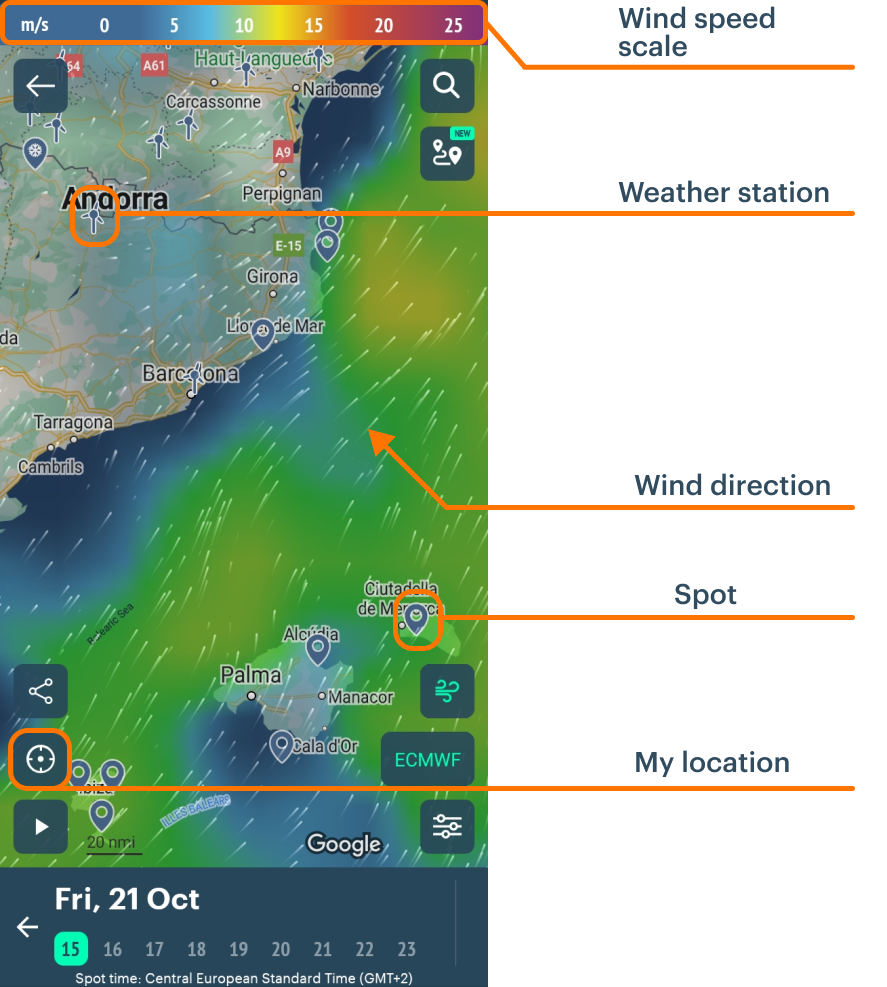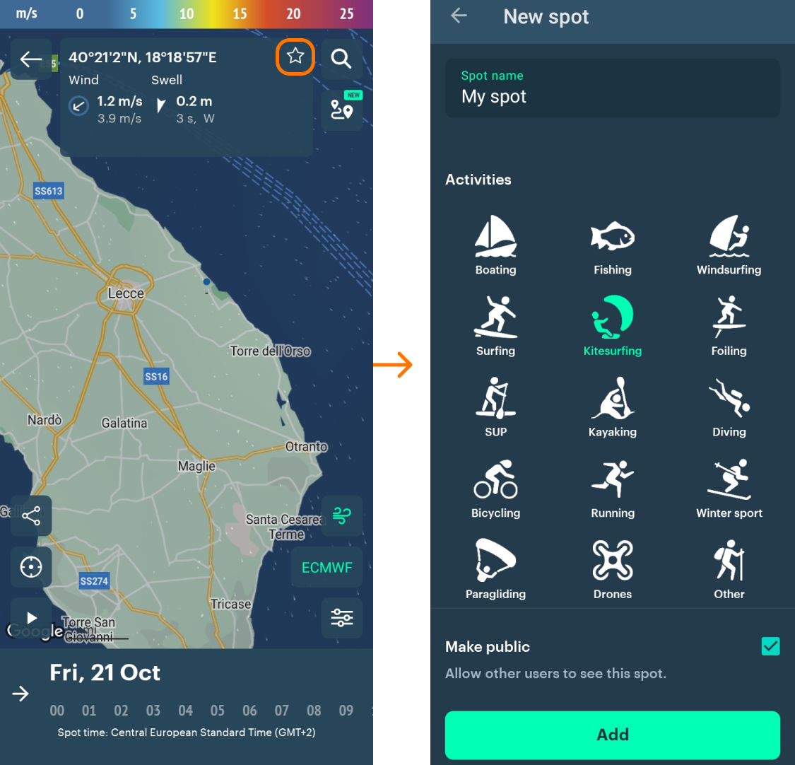 - Find the forecast for a spot (= particular location):